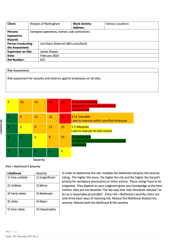 Risk assessment for assaults and violence against employees on all sites.