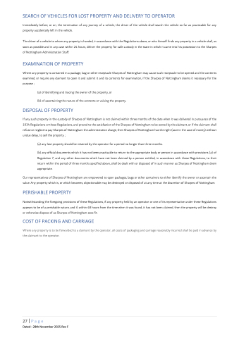 SEARCH OF VEHICLES FOR LOST PROPERTY AND DELIVERY TO OPERATOR